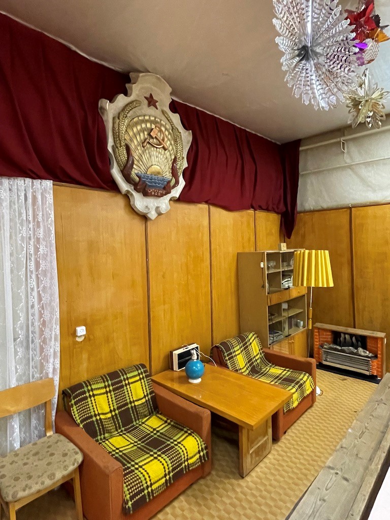 A party room at the bunker, decorated with Soviet symbols.