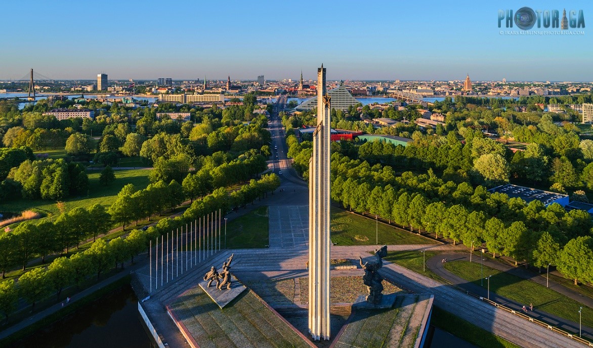 After our visit to the Academy of Sciences, we circled the Victory Memorial to the Soviet Army, one of Riga’s most controversial monuments. The Memorial was erected in 1985 to commemorate the Soviet Army’s victory over Nazi Germany in World War II. The memorial complex is now surrounded by police barriers and is slated for demolition this fall.